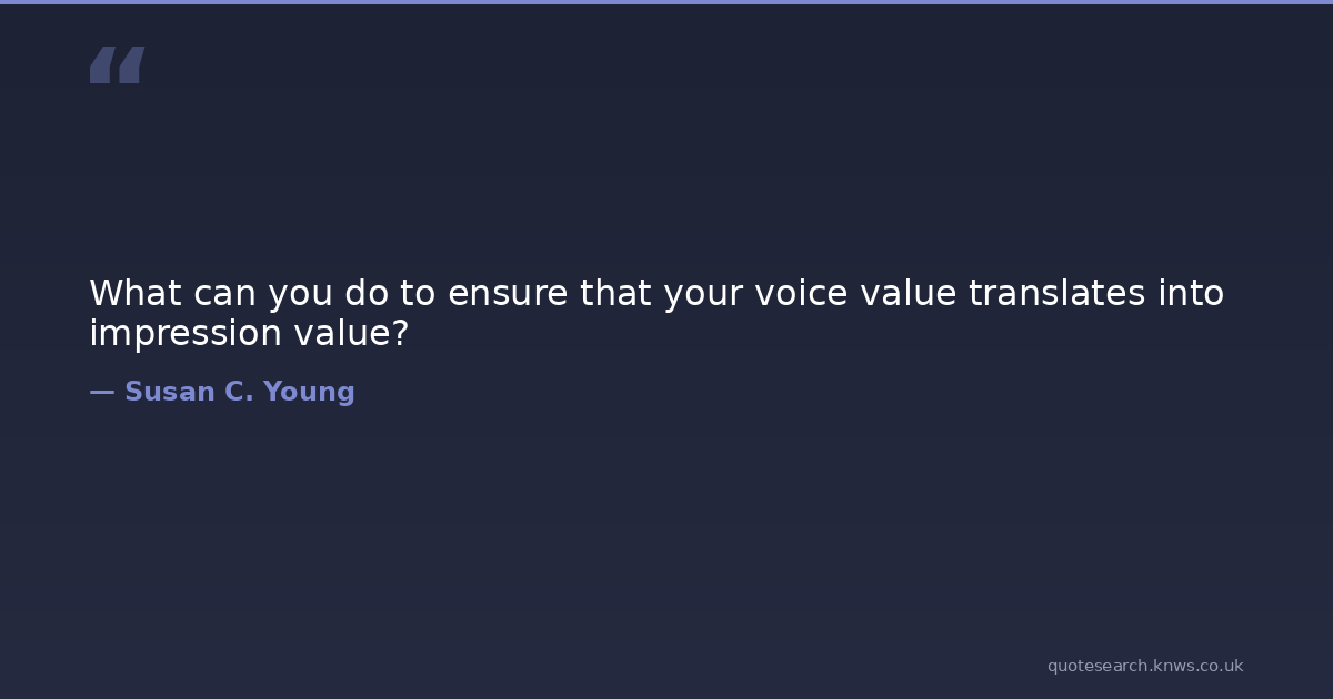 What can you do to ensure that your voice value translates into impression value? change-agent communication-skills customer-service-quotes employee-engagement motivational-leadership-speaker motivational-speaker-susan-young positive-first-impression-quotes quotes-by-susan-c-young relationship-quotes susanspeaks-com Download Image Share on X Share on Facebook Copy Link