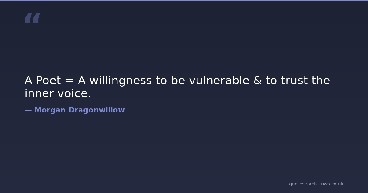 A Poet = A willingness to be vulnerable & to trust the inner voice. inner-voice poet poetry vulnerable what-a-poet-is Download Image Share on X Share on Facebook Copy Link