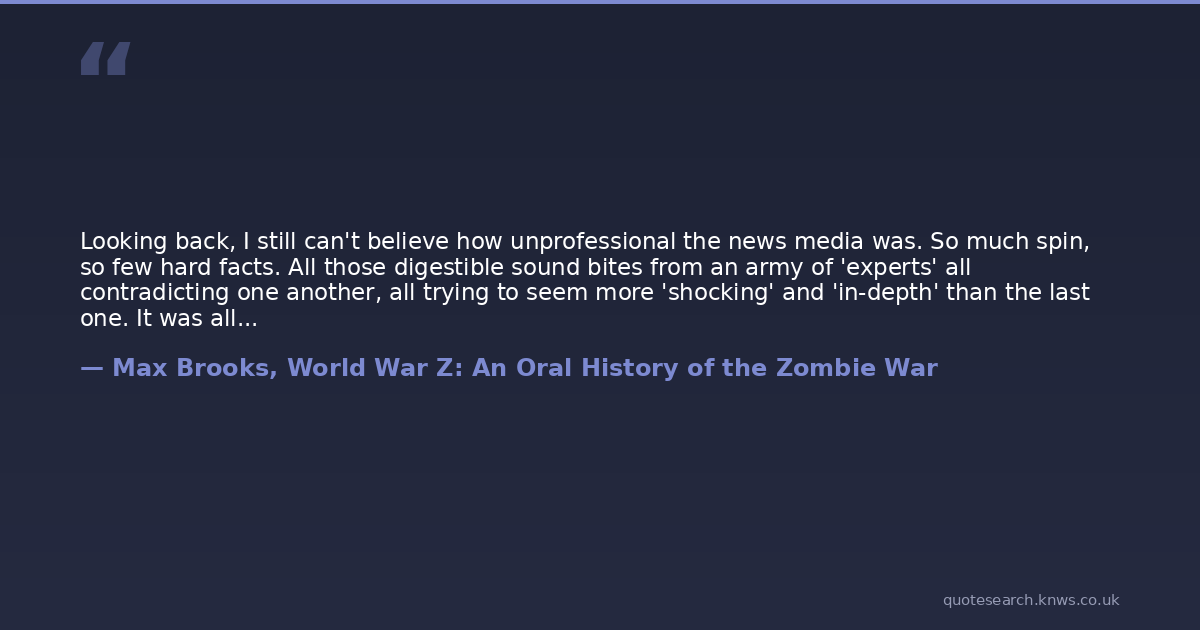Looking back, I still can't believe how unprofessional the news media was. So much spin, so few hard facts. All those digestible sound bites from an army of 'experts' all contradicting one another, all trying to seem more 'shocking' and 'in-depth' than the last one. It was all so confusing, nobody seemed to know what to do.