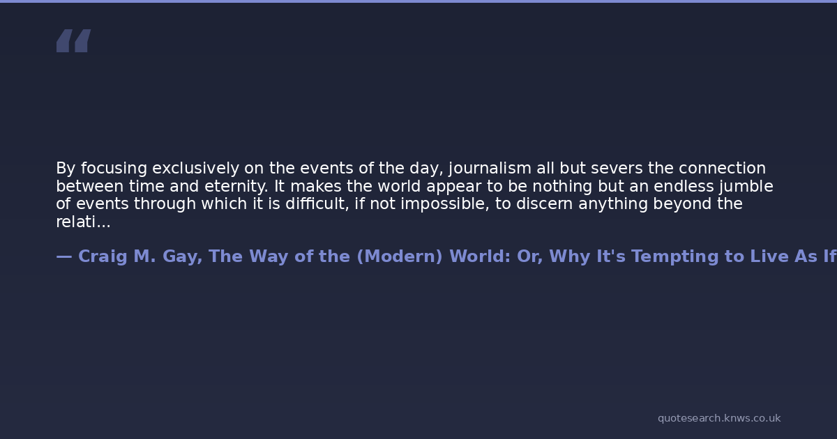 By focusing exclusively on the events of the day, journalism all but severs the connection between time and eternity. It makes the world appear to be nothing but an endless jumble of events through which it is difficult, if not impossible, to discern anything beyond the relatively base motivations of lust, calculated self-interest, and the will to power. In short, journalism is not able to communicate wisdom.