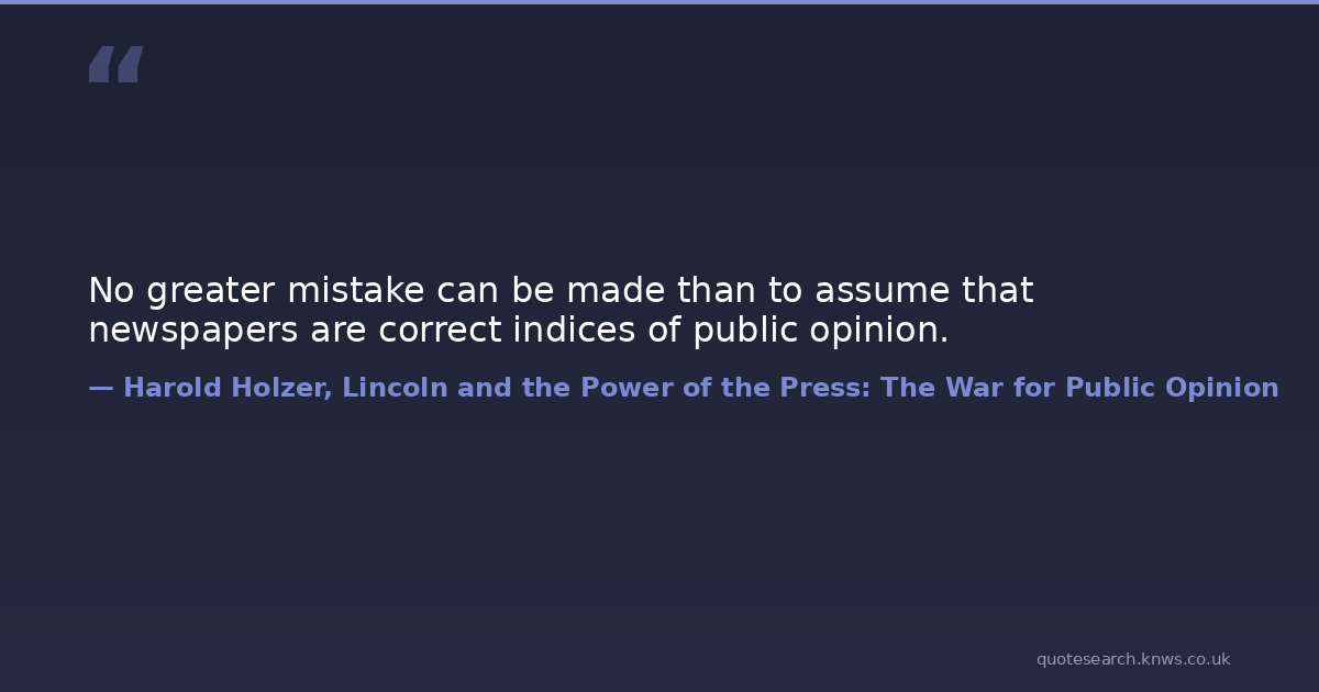 No greater mistake can be made than to assume that newspapers are correct indices of public opinion.