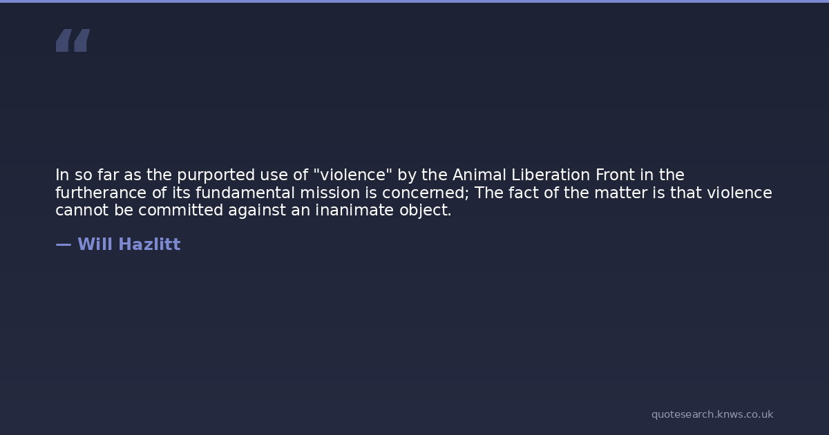 In so far as the purported use of "violence" by the Animal Liberation Front in the furtherance of its fundamental mission is concerned; The fact of the matter is that violence cannot be committed against an inanimate object.