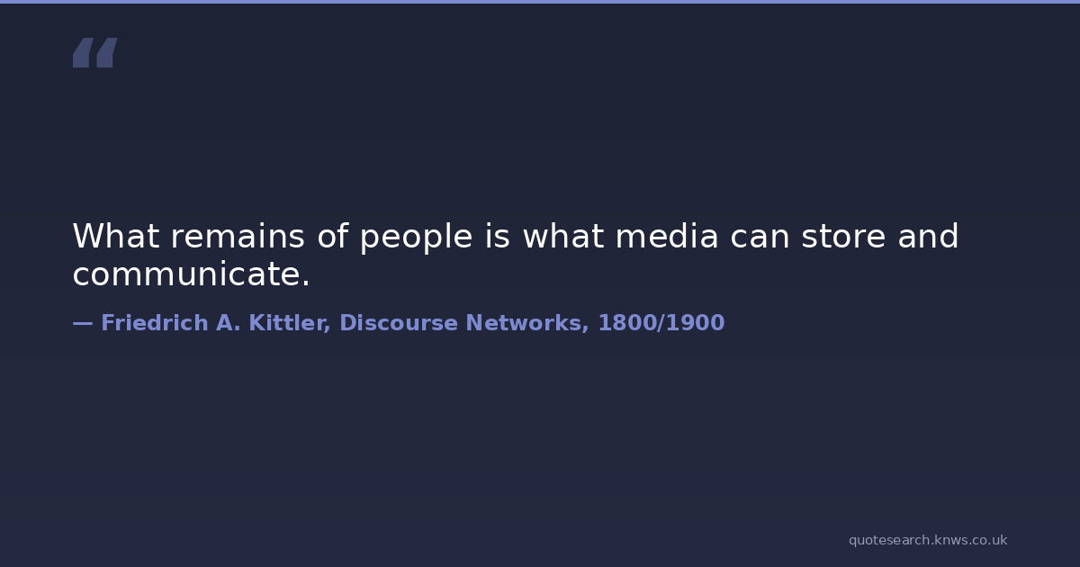 What remains of people is what media can store and communicate. media people Download Image Share on X Share on Facebook Copy Link