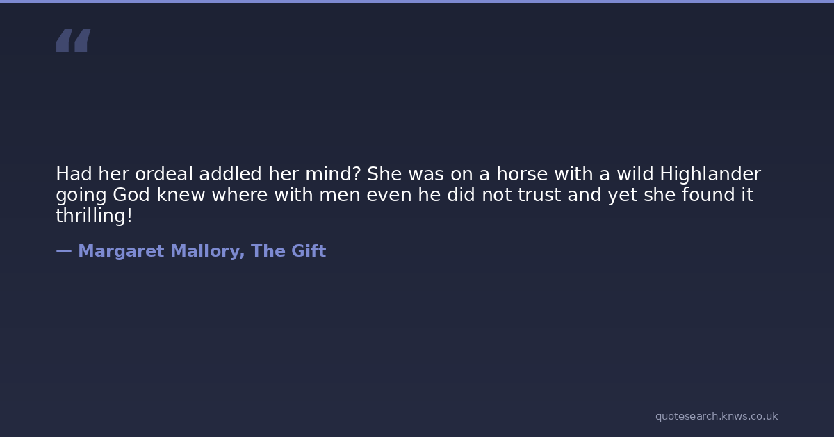 Had her ordeal addled her mind? She was on a horse with a wild Highlander going God knew where with men even he did not trust and yet she found it thrilling!