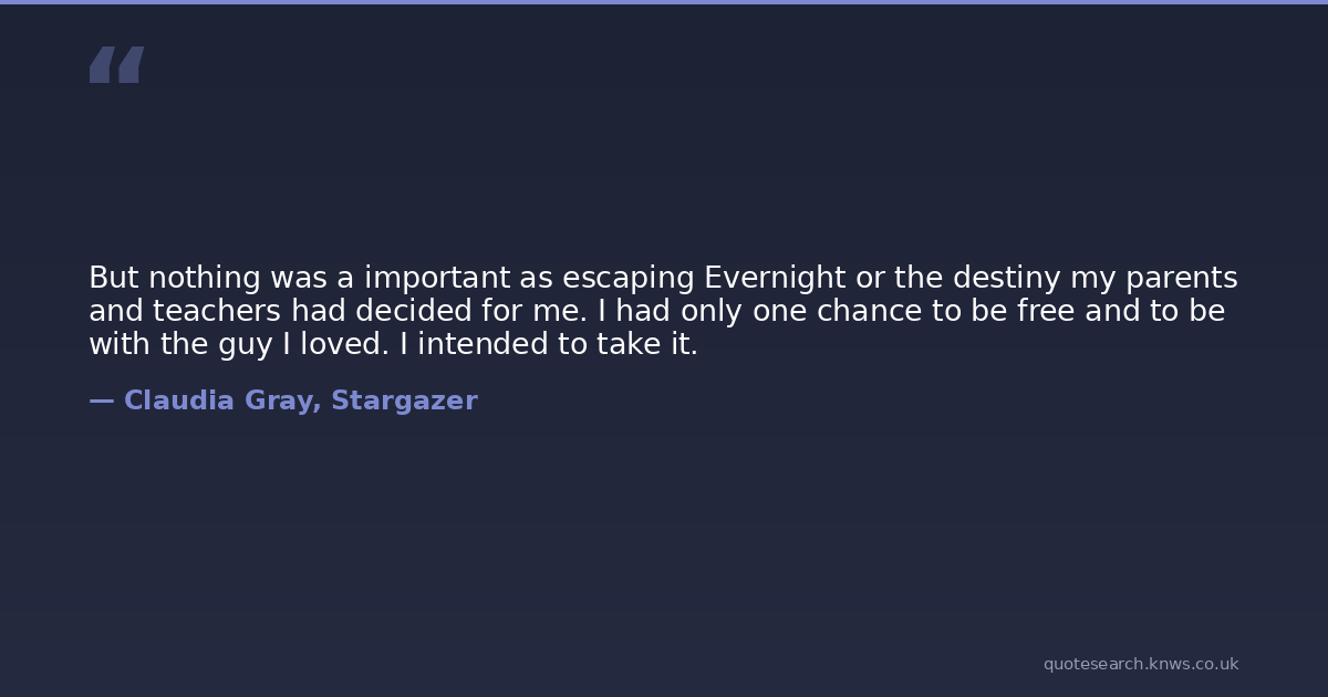 But nothing was a important as escaping Evernight or the destiny my parents and teachers had decided for me. I had only one chance to be free and to be with the guy I loved. I intended to take it.