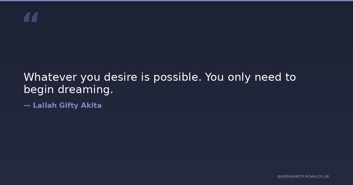 Whatever you desire is possible. You only need to begin dreaming.