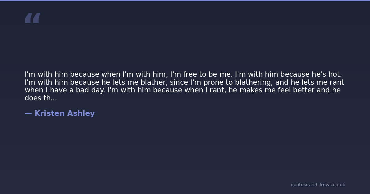 I'm with him because when I'm with him, I'm free to be me. I'm with him because he's hot. I'm with him because he lets me blather, since I'm prone to blathering, and he lets me rant when I have a bad day. I'm with him because when I rant, he makes me feel better and he does this effortlessly. I'm with him because I live for the times when I'm on the back of his bike and we're riding together, not even talking, just being free.