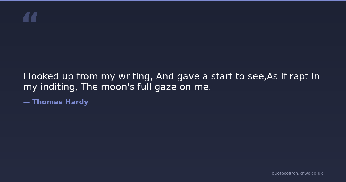 I looked up from my writing, And gave a start to see,As if rapt in my inditing, The moon's full gaze on me.