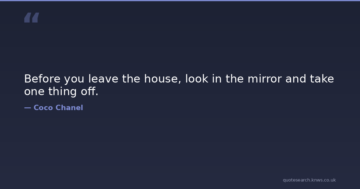 Before you leave the house, look in the mirror and take one thing off. accessories fashion minimalism simplicity Download Image Share on X Share on Facebook Copy Link