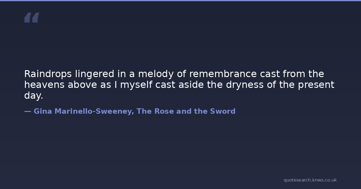 Raindrops lingered in a melody of remembrance cast from the heavens above as I myself cast aside the dryness of the present day.