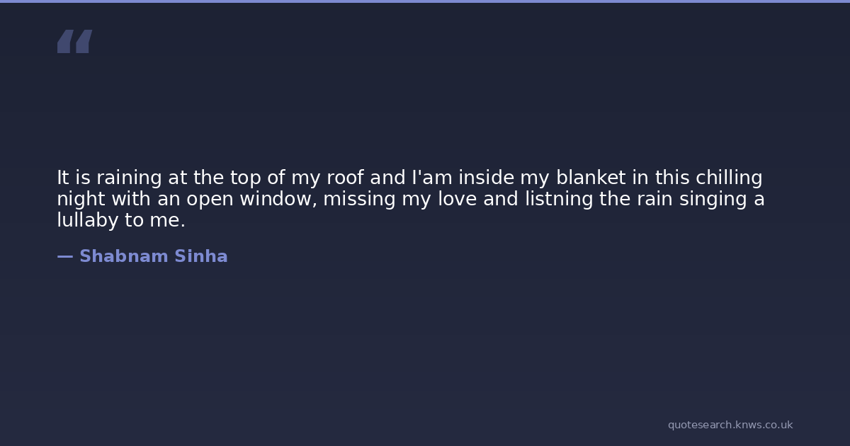 It is raining at the top of my roof and I'am inside my blanket in this chilling night with an open window, missing my love and listning the rain singing a lullaby to me.