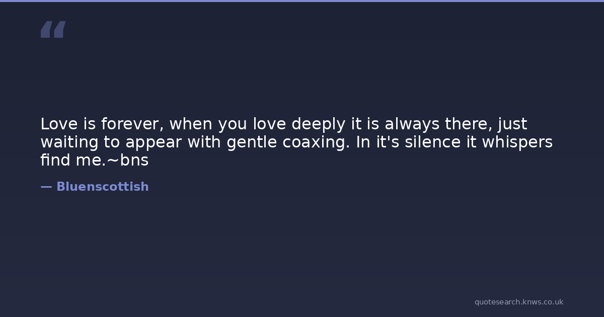 Love is forever, when you love deeply it is always there, just waiting to appear with gentle coaxing. In it's silence it whispers find me.~bns