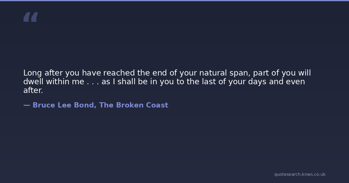 Long after you have reached the end of your natural span, part of you will dwell within me . . . as I shall be in you to the last of your days and even after.