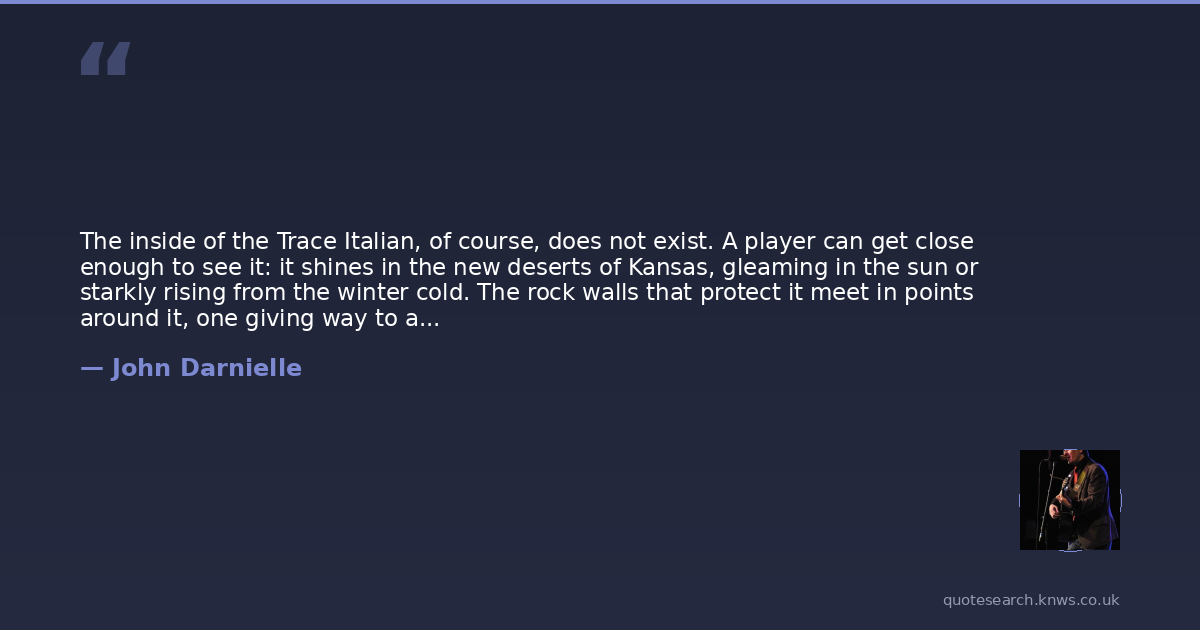 The inside of the Trace Italian, of course, does not exist. A player can get close enough to see it: it shines in the new deserts of Kansas, gleaming in the sun or starkly rising from the winter cold. The rock walls that protect it meet in points around it, one giving way to another, for days on end. But the dungeons into which you'll fall as you work through the pathways to its gates number in the low hundreds, and if you actually get into the entry hall, there are a few hundred more sub-dungeons before you'll actually reach somewhere that's truly safe. Technically, it's possible to get to the last room in the final chamber of the Trace Italian, but no one will ever do it. No one will ever live that long.