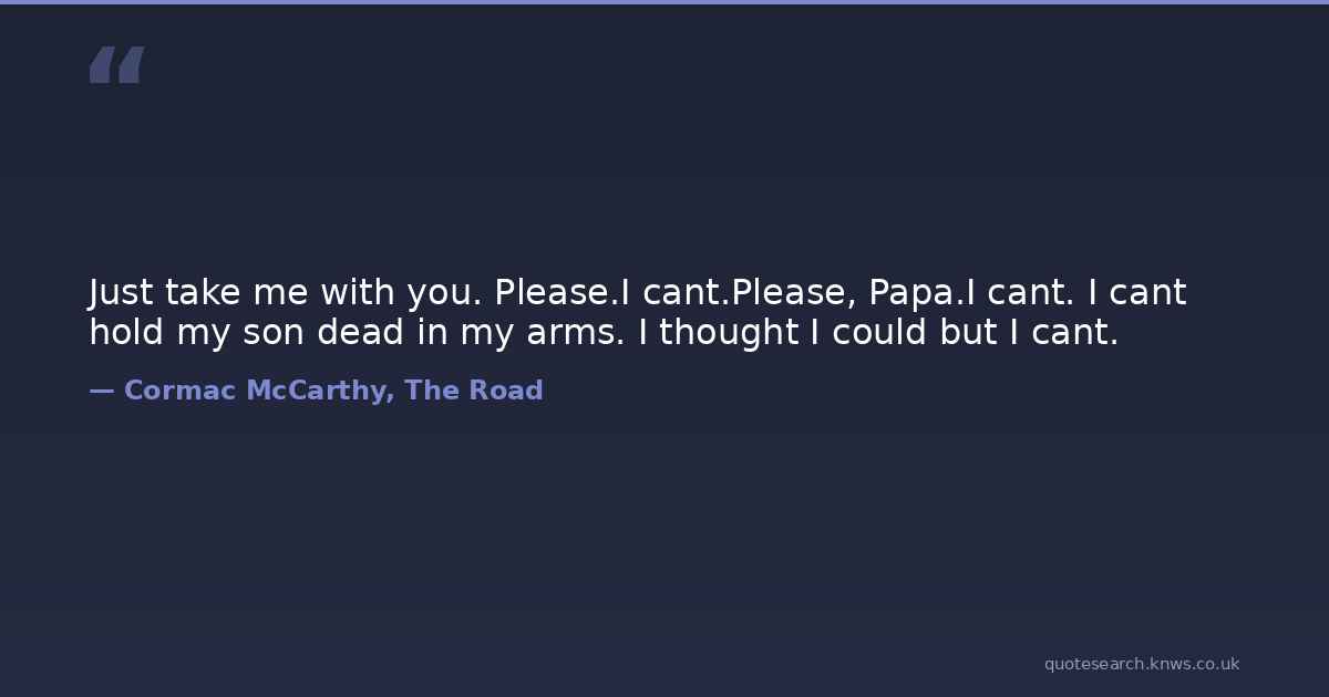 Just take me with you. Please.I cant.Please, Papa.I cant. I cant hold my son dead in my arms. I thought I could but I cant.