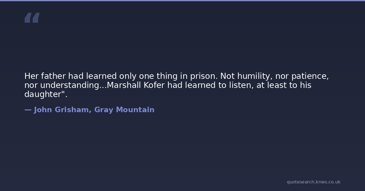 Her father had learned only one thing in prison. Not humility, nor patience, nor understanding...Marshall Kofer had learned to listen, at least to his daughter".