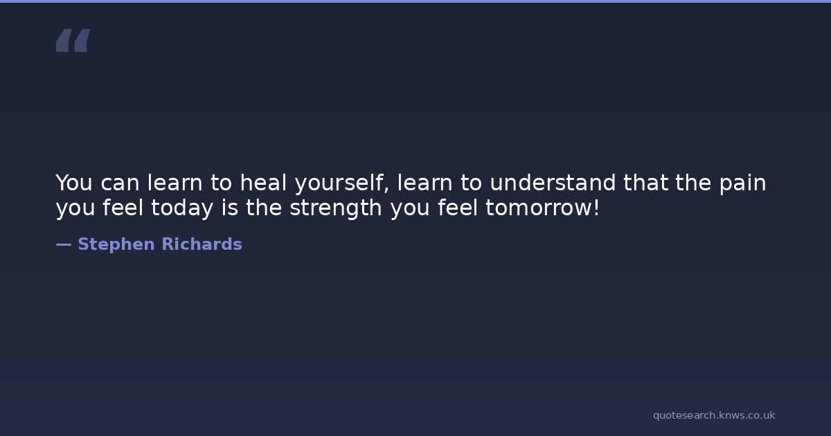 You can learn to heal yourself, learn to understand that the pain you feel today is the strength you feel tomorrow!