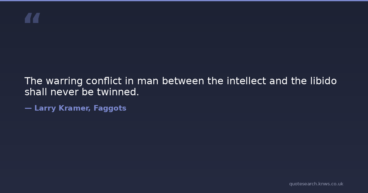 The warring conflict in man between the intellect and the libido shall never be twinned.