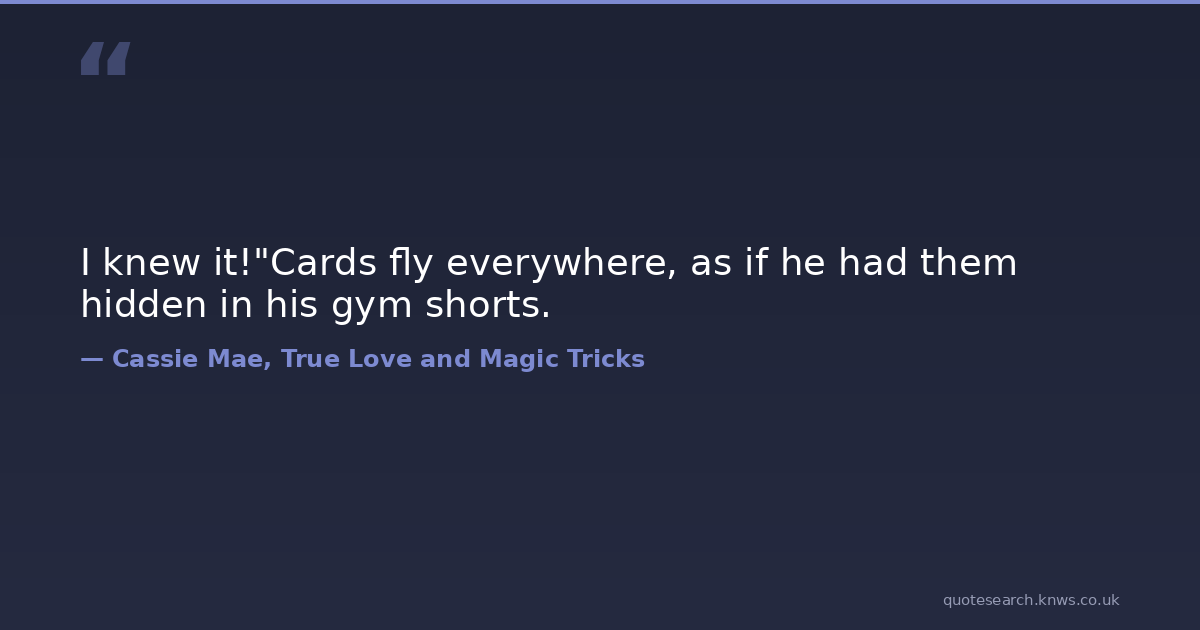 I knew it!"Cards fly everywhere, as if he had them hidden in his gym shorts.