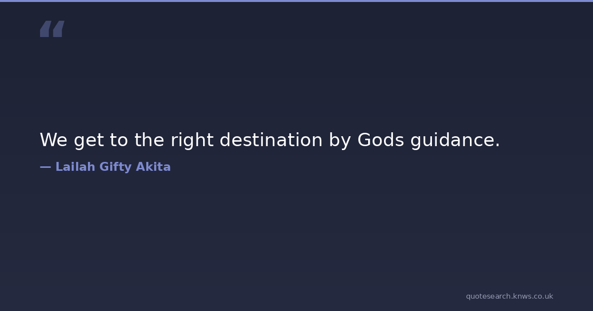We get to the right destination by Gods guidance. crossroad fate hope lailah-gifty-akita-affirmations life mission path positive-thinking self-help spirituality travel wisdom Download Image Share on X Share on Facebook Copy Link