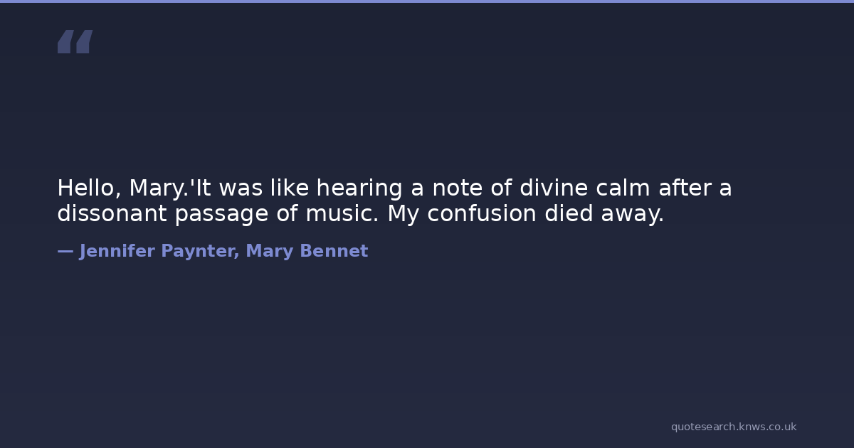 Hello, Mary.'It was like hearing a note of divine calm after a dissonant passage of music. My confusion died away.