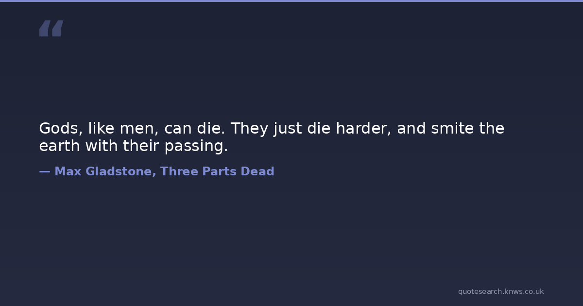 Gods, like men, can die. They just die harder, and smite the earth with their passing. gods Download Image Share on X Share on Facebook Copy Link