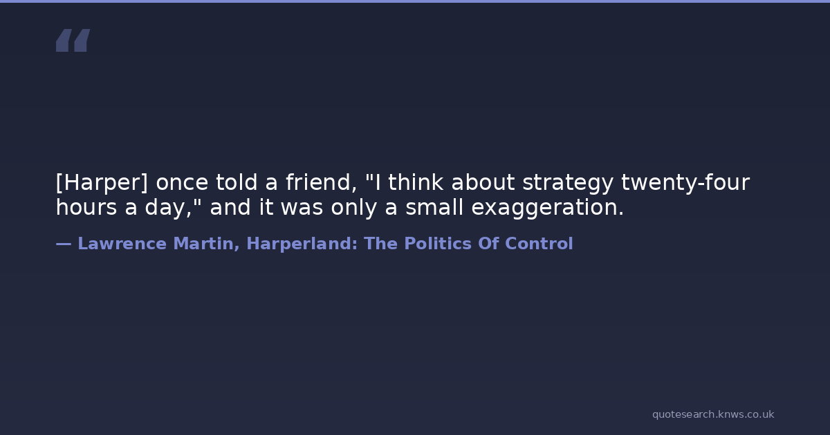 [Harper] once told a friend, "I think about strategy twenty-four hours a day," and it was only a small exaggeration.