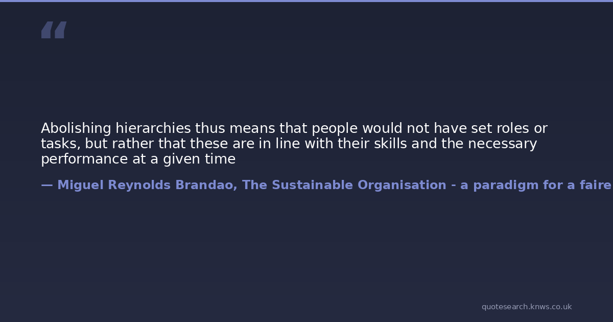 Abolishing hierarchies thus means that people would not have set roles or tasks, but rather that these are in line with their skills and the necessary performance at a given time