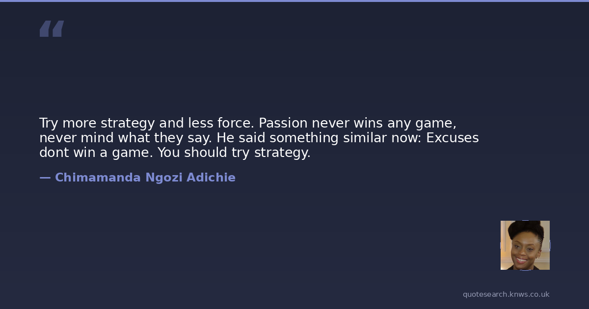 Try more strategy and less force. Passion never wins any game, never mind what they say. He said something similar now: Excuses dont win a game. You should try strategy.