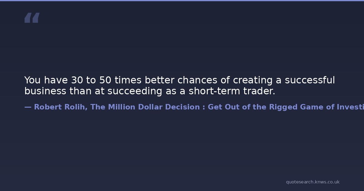 You have 30 to 50 times better chances of creating a successful business than at succeeding as a short-term trader.