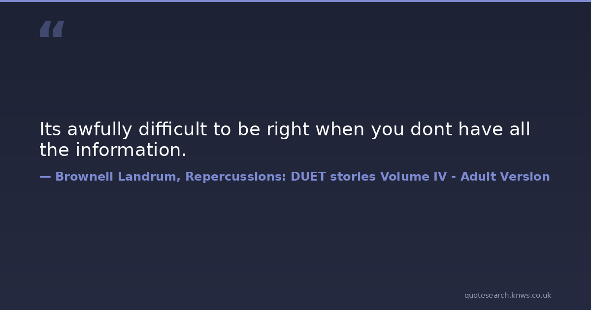 Its awfully difficult to be right when you dont have all the information.