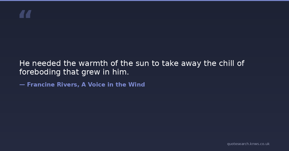 He needed the warmth of the sun to take away the chill of foreboding that grew in him.