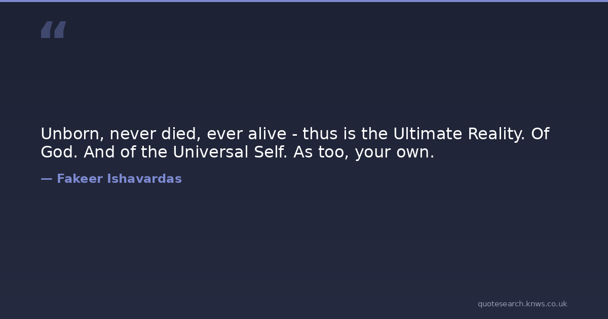 Unborn, never died, ever alive - thus is the Ultimate Reality. Of God. And of the Universal Self. As too, your own.
