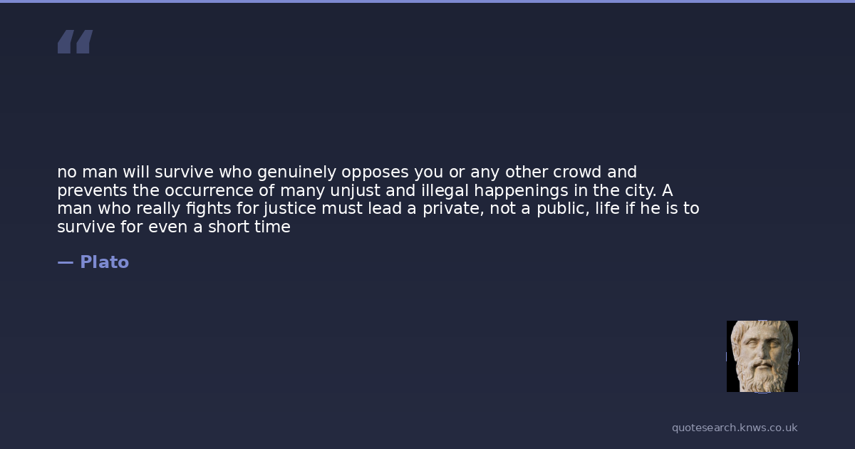 no man will survive who genuinely opposes you or any other crowd and prevents the occurrence of many unjust and illegal happenings in the city. A man who really fights for justice must lead a private, not a public, life if he is to survive for even a short time