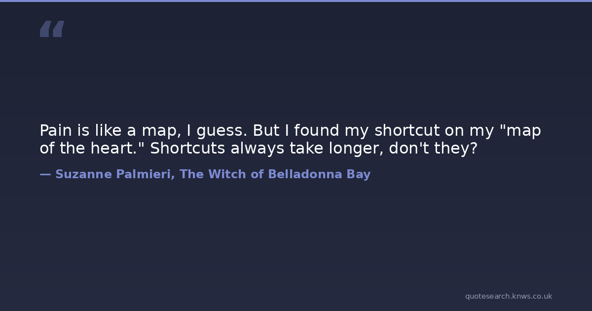 Pain is like a map, I guess. But I found my shortcut on my "map of the heart." Shortcuts always take longer, don't they?