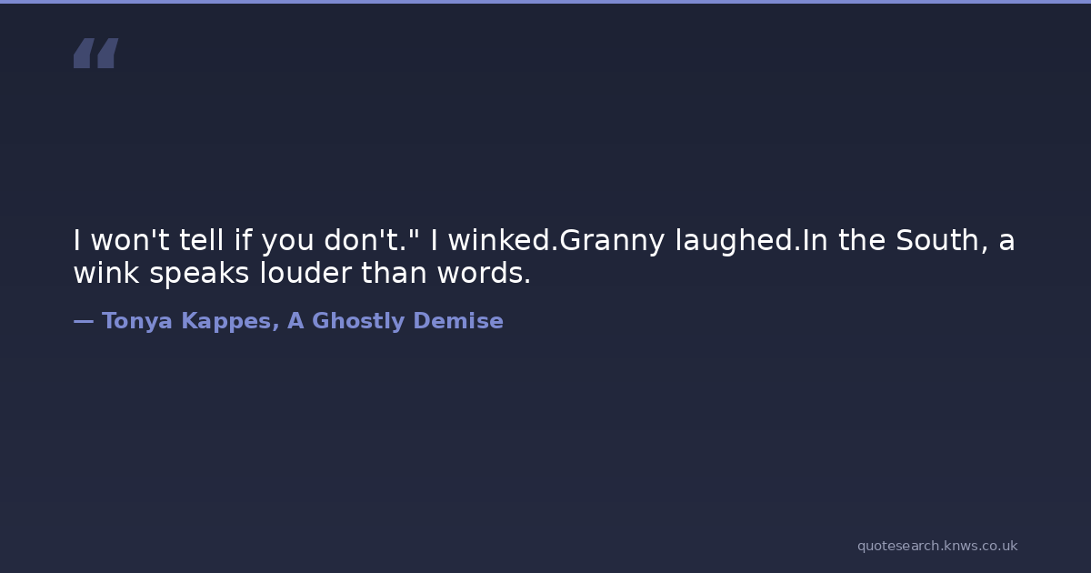 I won't tell if you don't." I winked.Granny laughed.In the South, a wink speaks louder than words.