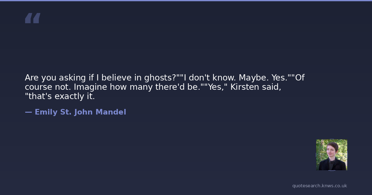 Are you asking if I believe in ghosts?""I don't know. Maybe. Yes.""Of course not. Imagine how many there'd be.""Yes," Kirsten said, "that's exactly it.