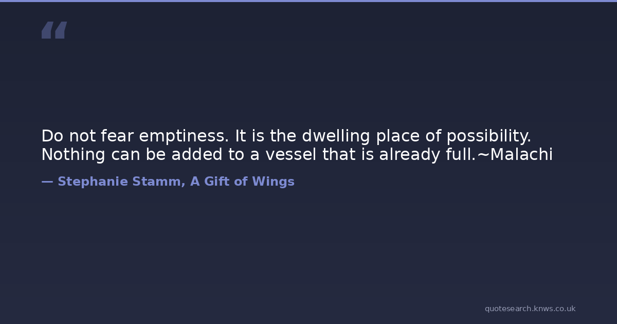 Do not fear emptiness. It is the dwelling place of possibility. Nothing can be added to a vessel that is already full.~Malachi