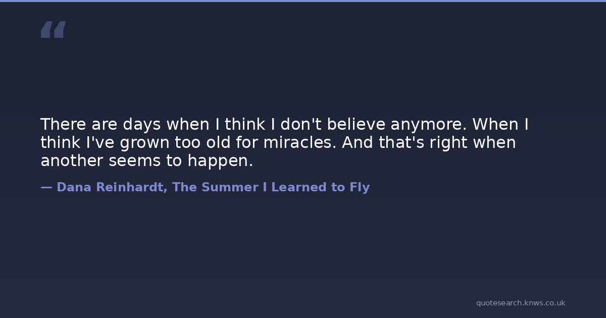 There are days when I think I don't believe anymore. When I think I've grown too old for miracles. And that's right when another seems to happen.