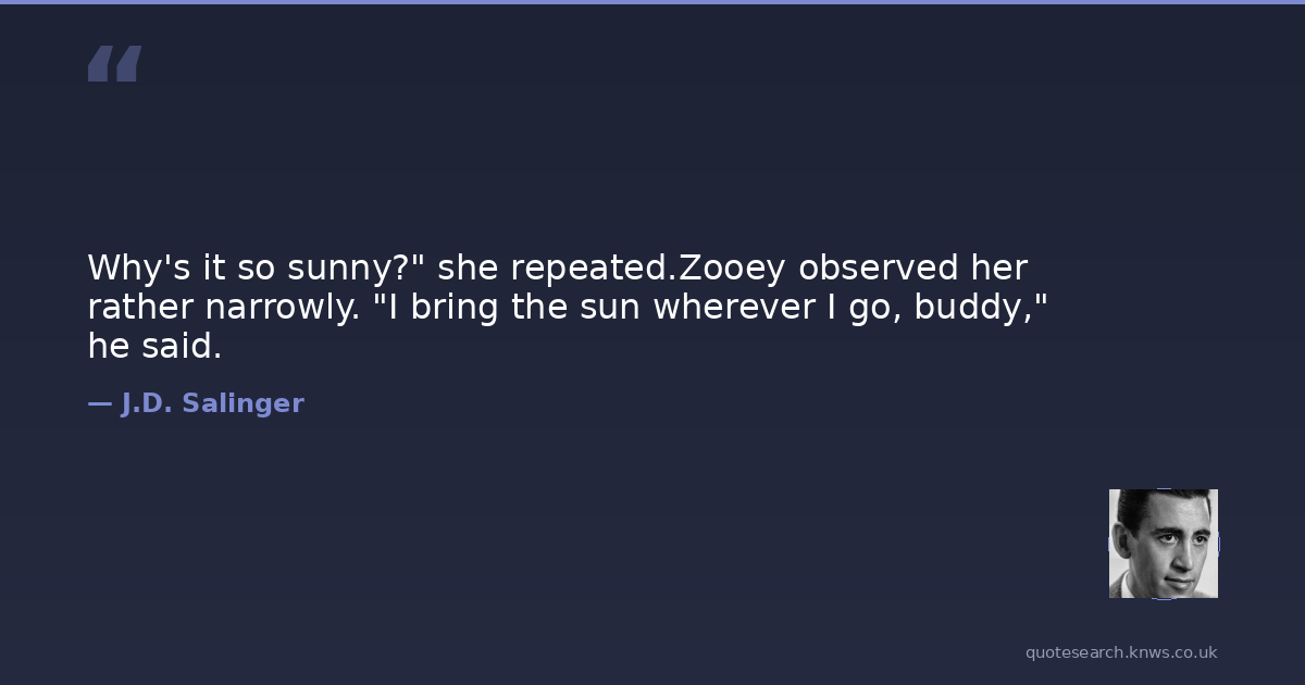 Why's it so sunny?" she repeated.Zooey observed her rather narrowly. "I bring the sun wherever I go, buddy," he said.