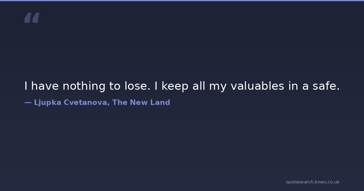 I have nothing to lose. I keep all my valuables in a safe. aphorisms fakeness falsehood materialism valuables Download Image Share on X Share on Facebook Copy Link