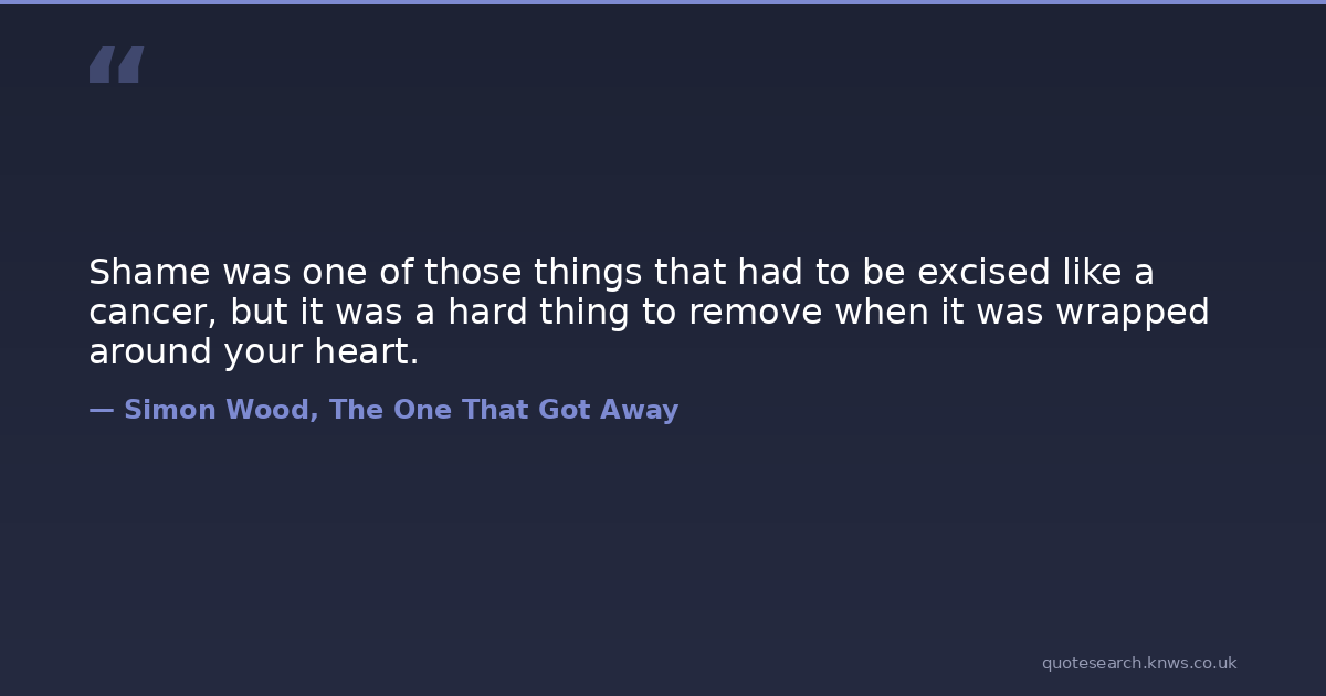 Shame was one of those things that had to be excised like a cancer, but it was a hard thing to remove when it was wrapped around your heart.