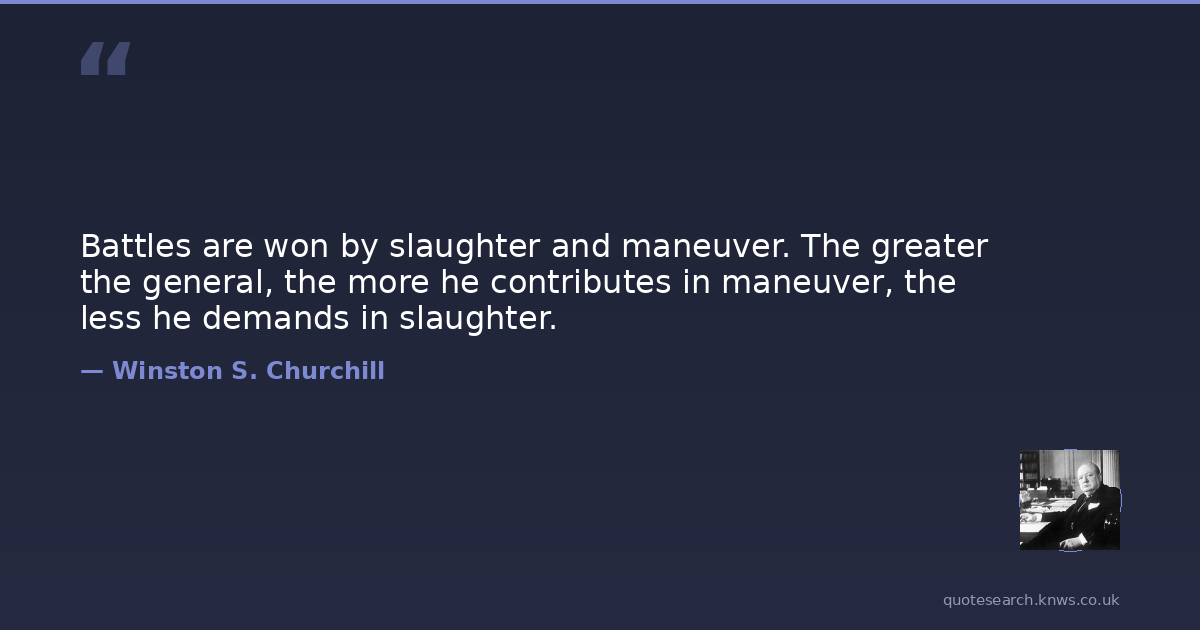 Battles are won by slaughter and maneuver. The greater the general, the more he contributes in maneuver, the less he demands in slaughter.
