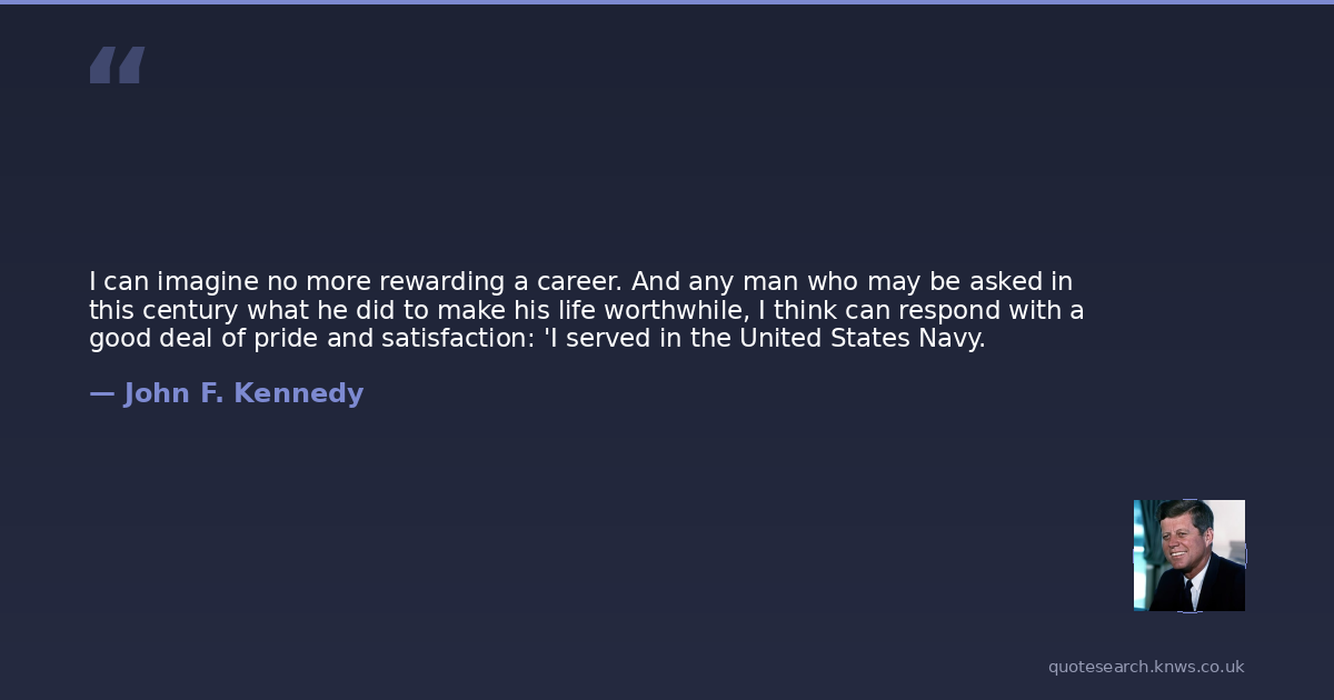 I can imagine no more rewarding a career. And any man who may be asked in this century what he did to make his life worthwhile, I think can respond with a good deal of pride and satisfaction: 'I served in the United States Navy.