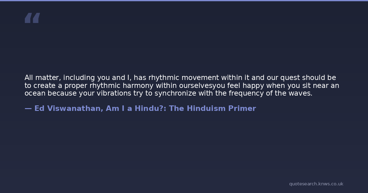 All matter, including you and I, has rhythmic movement within it and our quest should be to create a proper rhythmic harmony within ourselvesyou feel happy when you sit near an ocean because your vibrations try to synchronize with the frequency of the waves.