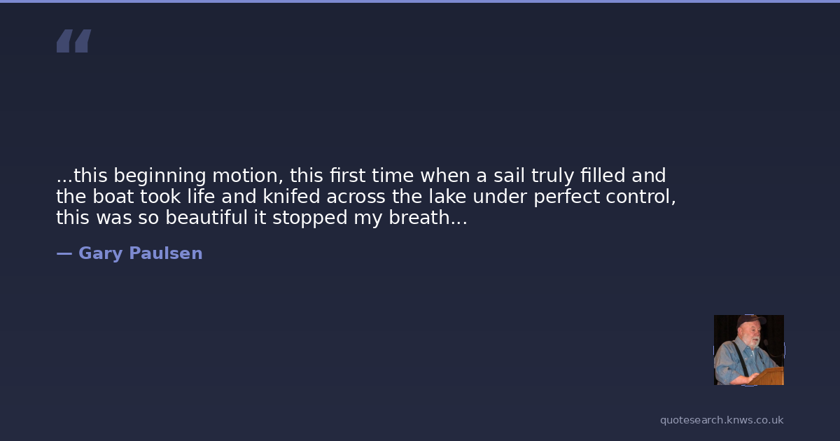 ...this beginning motion, this first time when a sail truly filled and the boat took life and knifed across the lake under perfect control, this was so beautiful it stopped my breath...