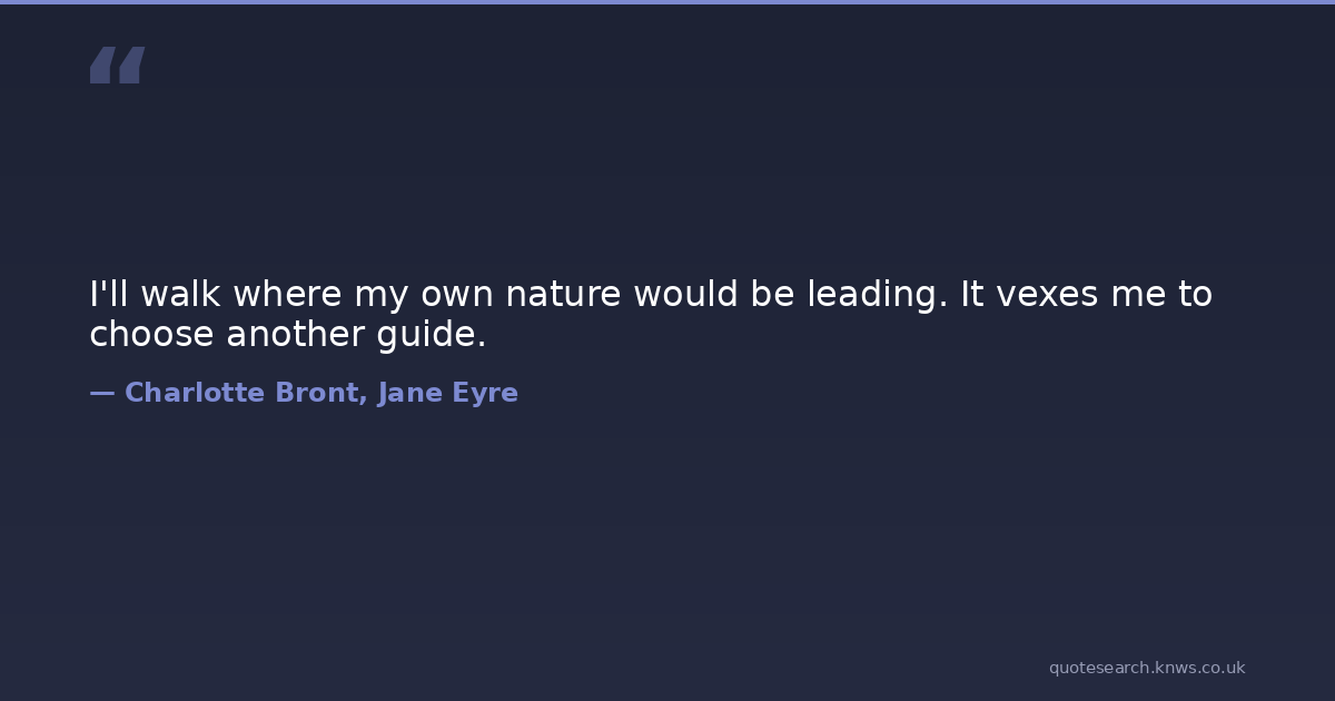 I'll walk where my own nature would be leading. It vexes me to choose another guide.