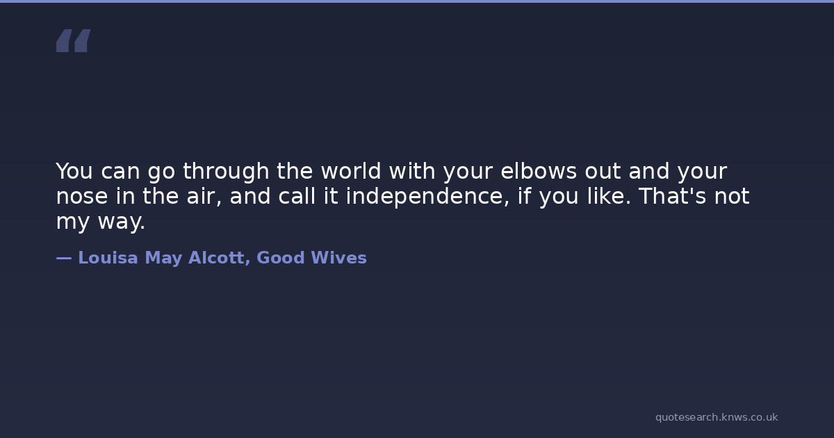 You can go through the world with your elbows out and your nose in the air, and call it independence, if you like. That's not my way.