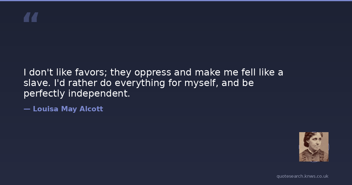 I don't like favors; they oppress and make me fell like a slave. I'd rather do everything for myself, and be perfectly independent.