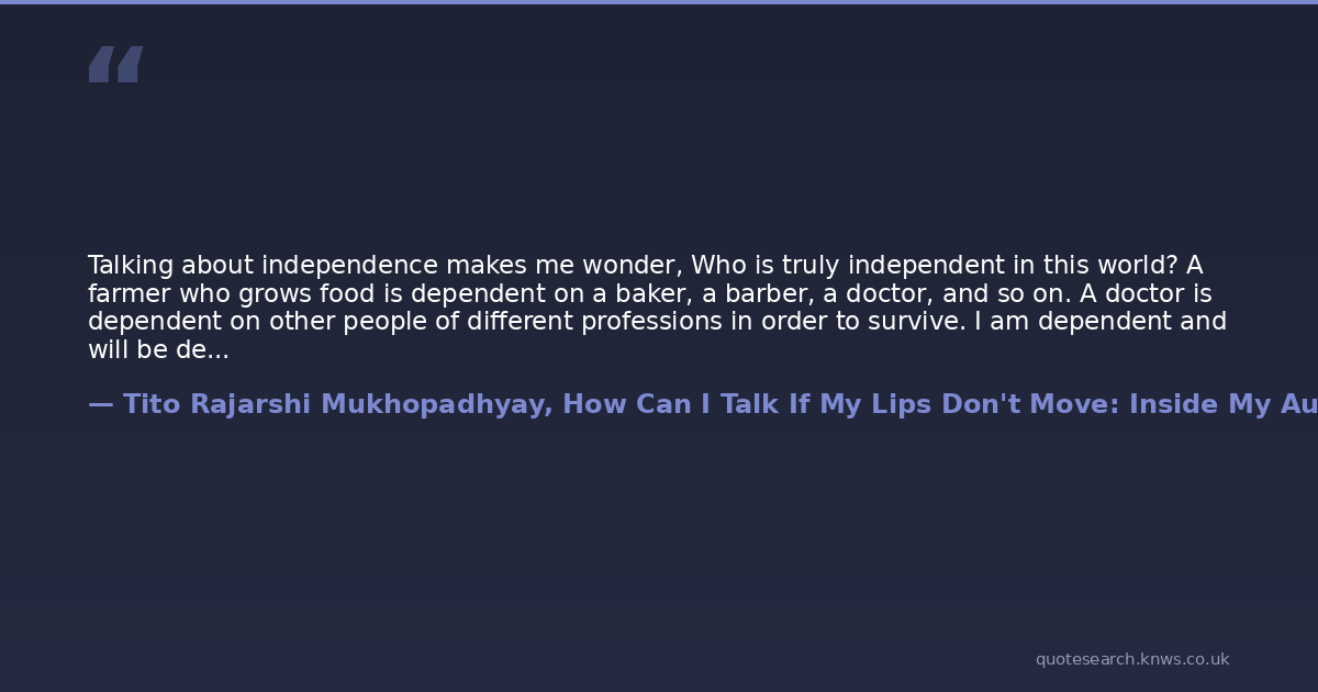 Talking about independence makes me wonder, Who is truly independent in this world? A farmer who grows food is dependent on a baker, a barber, a doctor, and so on. A doctor is dependent on other people of different professions in order to survive. I am dependent and will be dependent on certain caregivers and therapists. Those caregivers and therapists need people like me to earn their bread and butter and draw their salaries. So no one is doing any favors when choosing whatever his means of livelihood is.